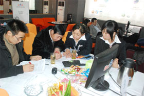 寒流入侵,涼風(fēng)習(xí)習(xí),吹不涼百度人暖暖的心田。2008年11月28號,營銷加速度——百度營銷專家培訓(xùn)會(huì)在我司三樓商務(wù)會(huì)所拉開了帷幕。眾多企業(yè)家朋友齊聚一堂,敞開心扉,交流分享。我司美女主持張捷女士擔(dān)任會(huì)議主持,貼心的問候,朝氣的笑容很快帶動(dòng)了會(huì)場的氣氛。我司丁溱平女士和盧全女士擔(dān)任此次會(huì)議的主講,兩位主講精彩而深動(dòng)的演講吸引了在場的每位客戶。