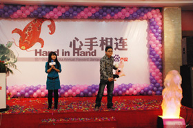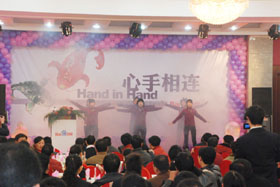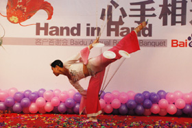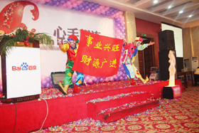 陽光絢爛,暖暖的冬風輕拍著臉蛋,心情格外的爽快。2008年12月20日,“心手相連”百度客戶答謝會在鹽城山青水秀綠色生態(tài)美食園隆重舉行,200多人的會場坐無虛席!此次會議可謂“眾星云集”,泰州名主持小柏擔任此次會議的主持,我們也有幸邀請到百度客服經理張鵬擔任此次會議的主講。午宴開始前百度渠道部經理晟皞的祝酒詞,百度市場部經理李方巖的“友情客串”,為此會議的舉辦增色不少。
