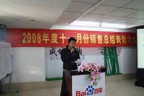 寒流襲擊,天氣驟冷,凍結(jié)不了我們熾熱的冠軍夢。2008年12月6日上午,我司11月銷售總結(jié)大會在公司7樓會議室開展得如火如荼。此次會議實現(xiàn)了從純娛樂向分享經(jīng)驗?zāi)J降霓D(zhuǎn)變,除了常規(guī)的歌曲表演、小品表演、“金典故事”講述外,我們更偏重于大家銷售經(jīng)驗、工作心得及個人見解的分享。一個人就是一個哈姆雷特,我們的銷售精英們個個經(jīng)驗豐富,演講起來一點也不遜于王安之等高級培訓(xùn)講師,相比之下更具有實用價值,更貼近我們的生活。
